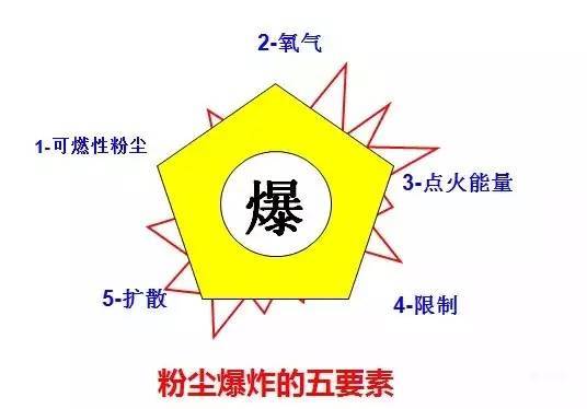 從粉塵爆 炸的形成上看,可燃性物質、空氣和點燃源是爆 炸事件發生的三個基本條件,即為爆 炸三要素。