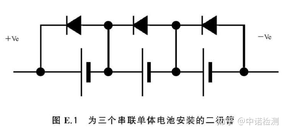 ——使用旁路二極管限制每個單體電池極性接反時的電壓。例如,對于由三個單體電池串聯連接組成的電池組提供的保護電路如圖E.1所示。